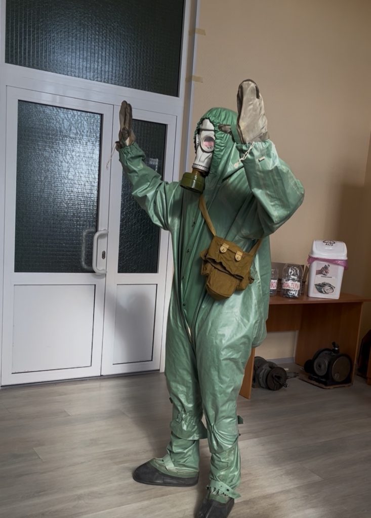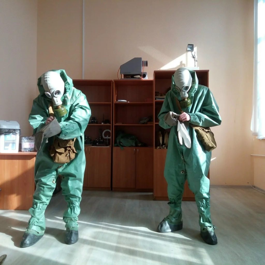Студенты групп Х-192, ИС-7 выполнили норматив по РХБ защите по надеванию общевойскового защитного комплекта в виде комбинезона.